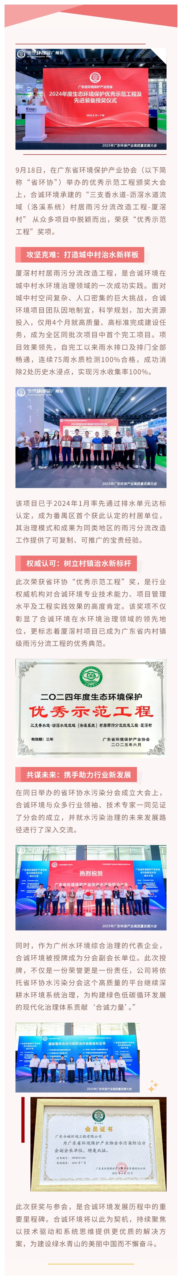 喜讯丨合诚环境厦滘村村居雨污分流改造工程荣获优秀示范工程奖