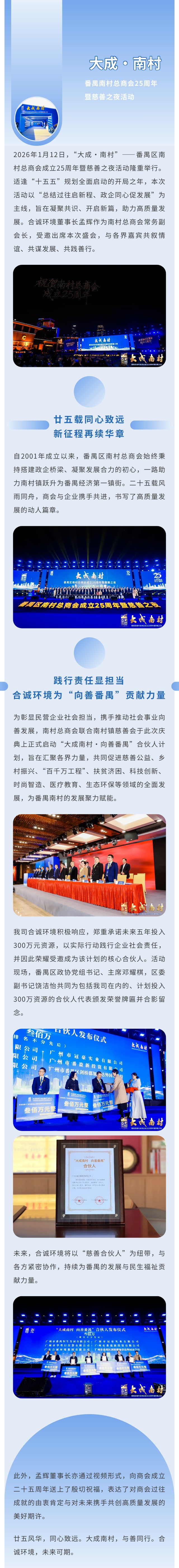南村总商会廿五华诞 合诚环境荣膺“大成南村 向善番禺”合伙人